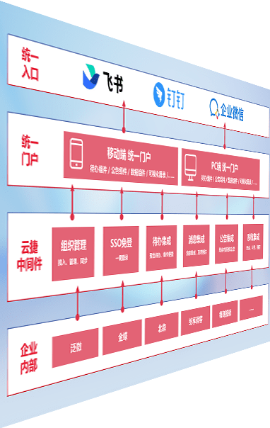 对协作平台提供支持服务,,支持企业应用与协作平台对接,,包含组织同步、、消息集成、、、、待办集成等。。。支持目前主流的协作平台:钉钉、、企微和飞书。。。。